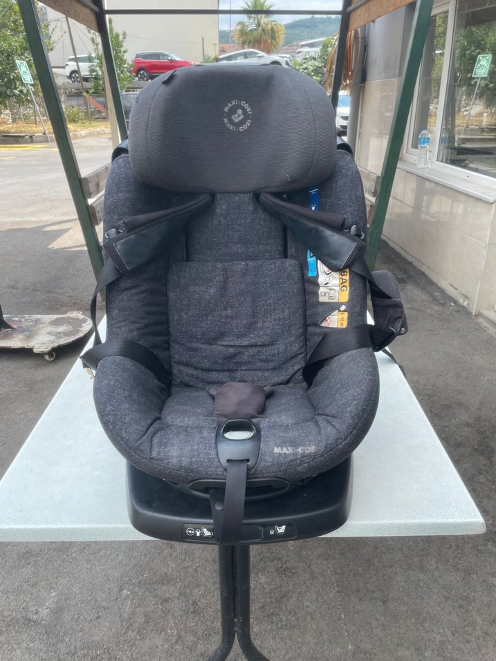 Gri renkli, yumuşak destekli ve ayarlanabilir kayışlı çocuk araç koltuğu. Çocukların yolculuk sırasında güvenliğini sağlar. 360 derece dönen koltuğa ve 19 kg kadar taşıma kapasitesine sahiptir