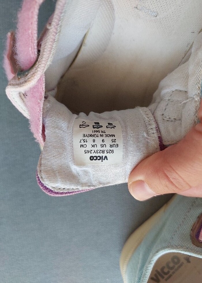 25 numara Vicco ayakkabi 3 ay kadar giydik 1bir kaç kez yıkandıktan için hafif renk solmasın var ve fotoğrafta olduğumu gibi ayakkabilarin bir tanesinin on tarfinda çizik var hiç Bi sıkıntısı yok