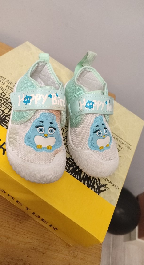 26 numara. Görüldüğü gibidir. Renkli, kaymaz tabanlı erkek bebek ilk adım ayakkabısı. Mavi baskılı, cırt cırtlı, rahat ve şık sokak tarzı için uygun.