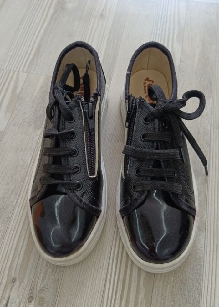 Çocuk ayakkabısı yanlar deri fermuarlı ön ve arkalar rugan düğün için alınmıştır yeni sayılabilir bir iki defa giyildi yere fazla basmadı temiz bir şekilde duruyor