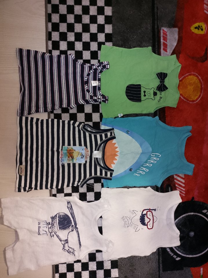 Çocuklar için çeşitli baskılı desenlere sahip koyu renkli çok renkli atletler. Rahat ve günlük kullanıma uygun. 1 adet şortlu tulum ile birlikte 3/6/9 ay