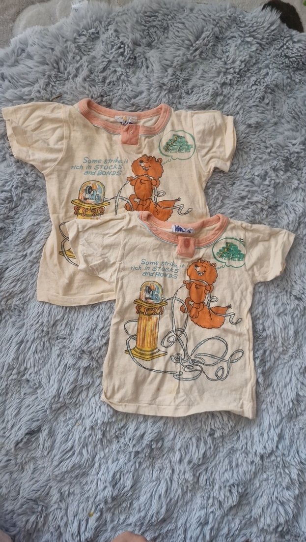 Pastel camel renginde, baskılı desenli çocuk içliği. Kısa kollu ve yuvarlak yakalı, yumuşak kumaş.