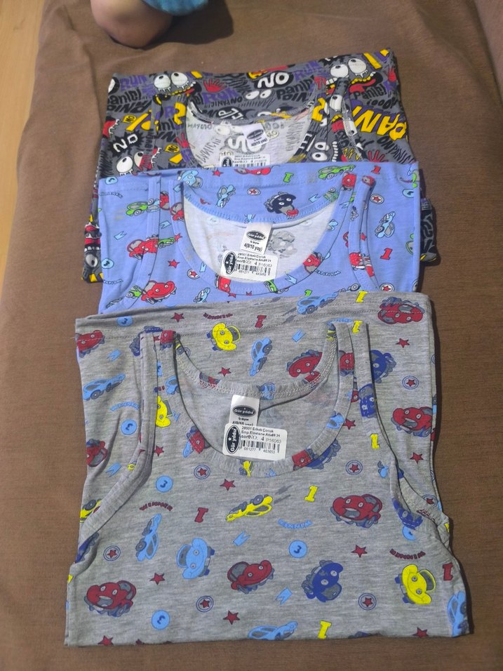 Renkli desenlere sahip, yumuşak kumaştan çocuklar için baskılı gri atletler.