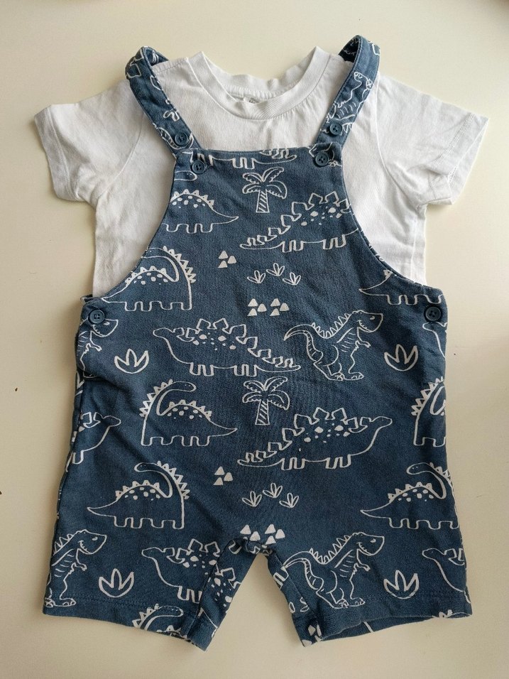 Baskılı dinozor desenli, bol kesim kot tulum. Tişörtü ayrıdır, dilerseniz ayrıca farklı veya uzun tişörtlerle birlikte de kullanabilirsiniz.