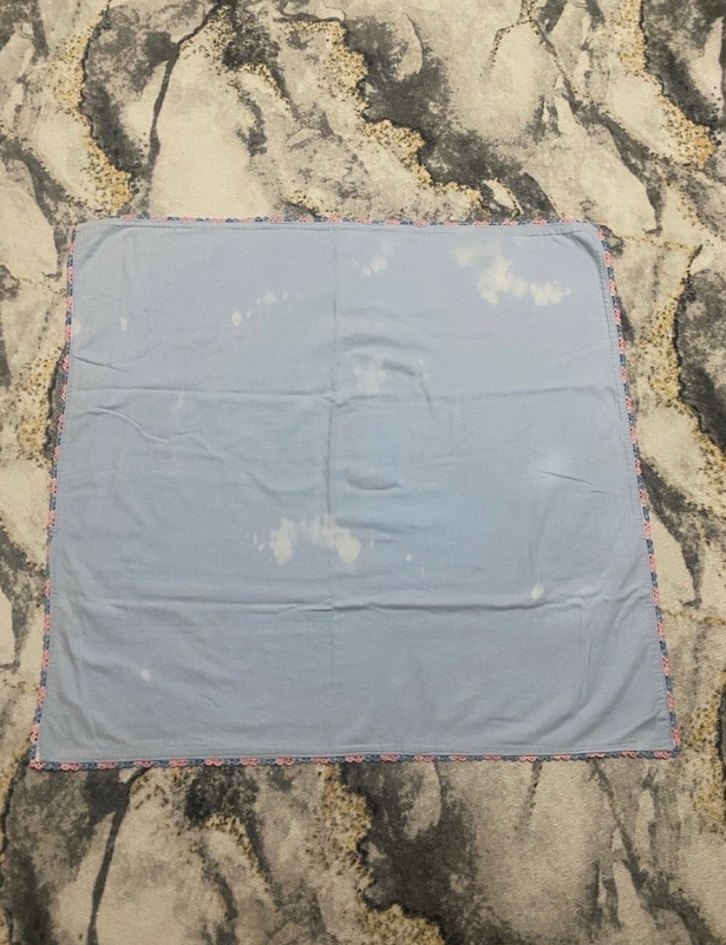 Çift yönlü çift katlı bebek battaniyesi, çamaşır suyu lekeleri var