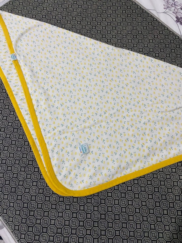 Çok az tiftiklenme vardır. Fotoğraf ekledim. Yumuşak sentetik kumaştan, sarı çiçek desenli çocuk battaniyesi, canlı sarı kenar süslemeli. Rahatlık sağlar.