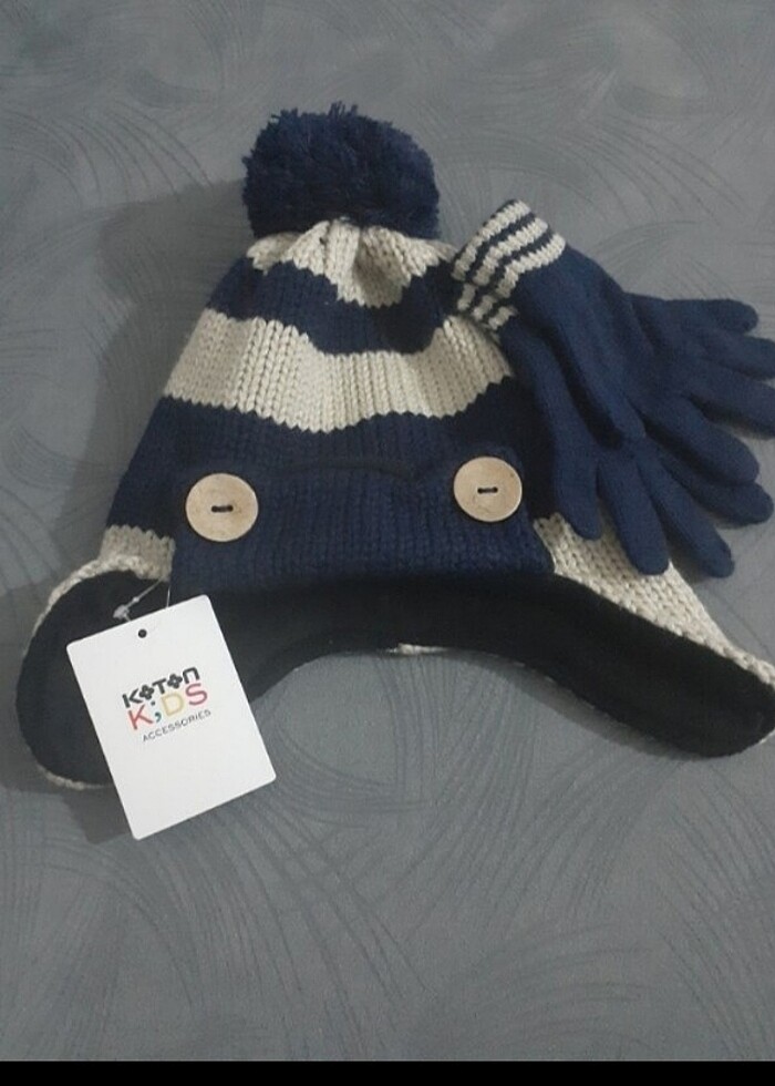 Koton kids çocuk bere ve eldiven takımı. 5yaş etiketli. Hiç kullanılmadı. Etiketiyle duruyor.