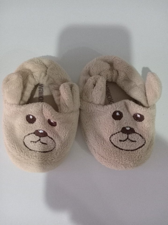 bej renkte, yumuşak ve sıcak kumaştan yapılmış, peluş detaylı ve sevimli ayı yüzü desenli ev terliği. Rahat kullanım sağlar.