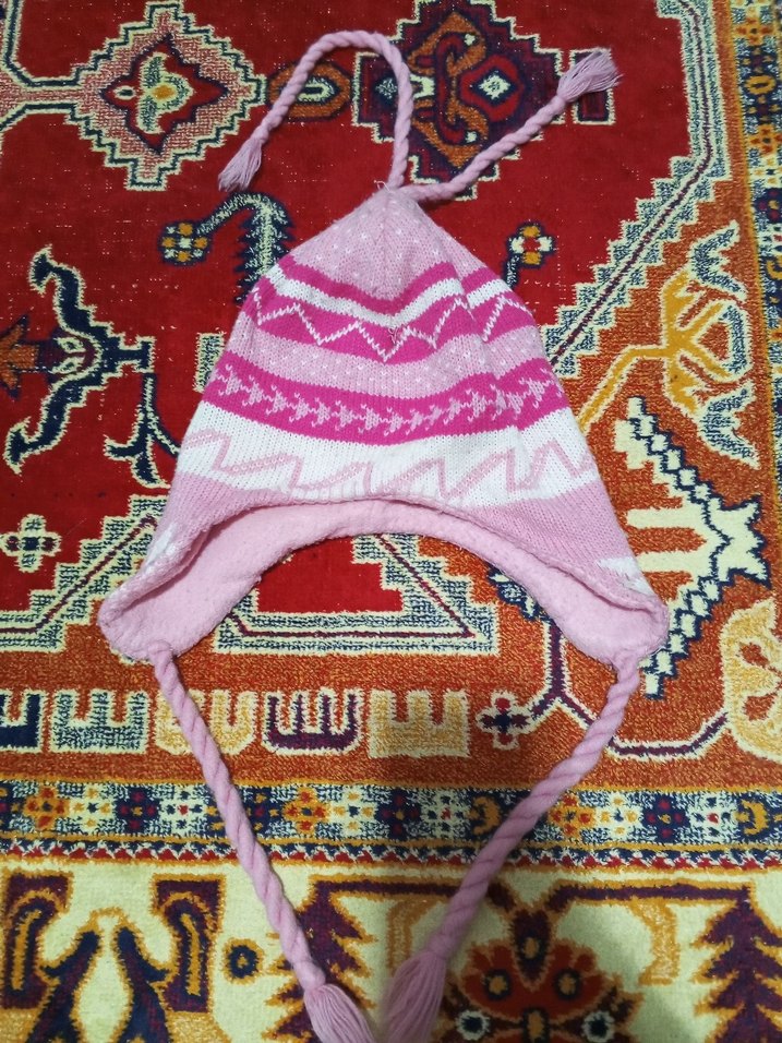 Nakışlı desenlere ve örgülü püsküllere sahip renkli çocuk bere, bohem ve retro tarzını yansıtıyor.