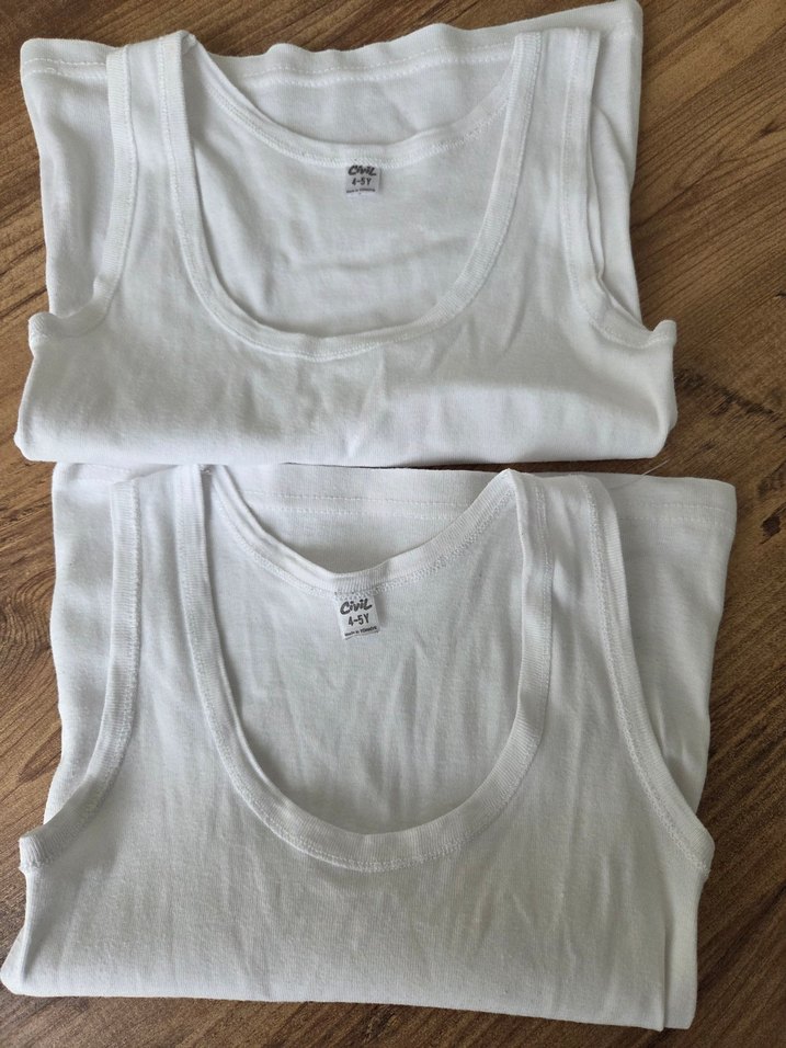 Yumuşak kumaştan, yuvarlak yakalı ve kolsuz tasarıma sahip çocuk beyaz atlet 2'li paket. Günlük kullanım için rahat.
