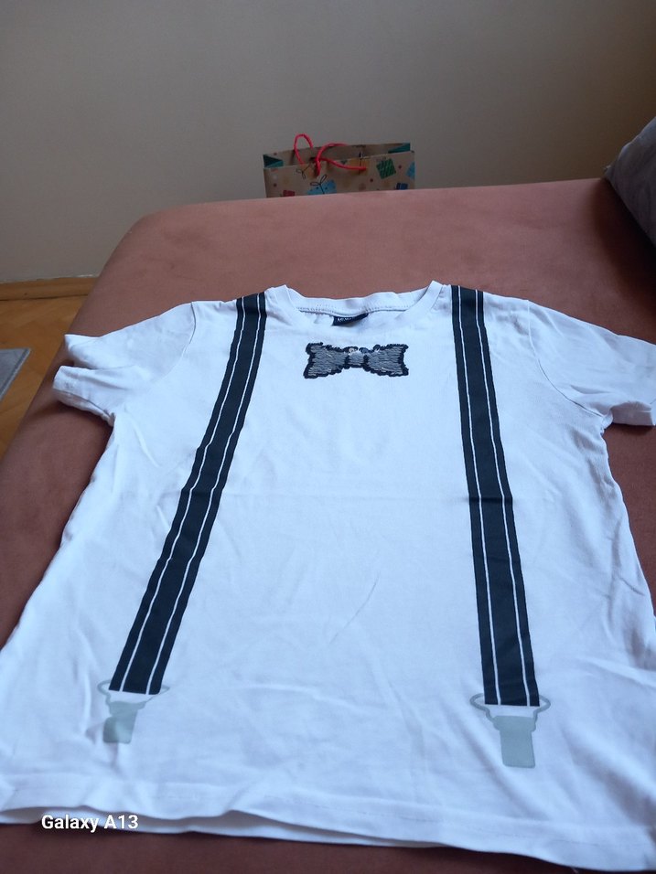 Çocuk Beyaz Baskılı Kemerli Tişört
