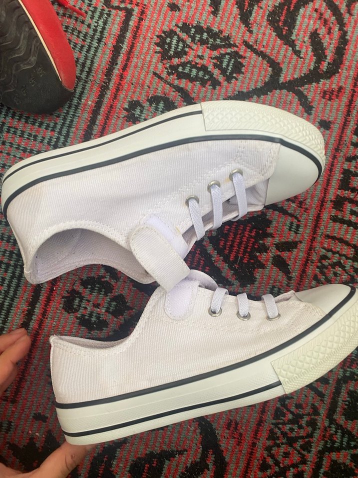 Pamuk kumaştan, cırt cırtlı ve dolgu topuklu beyaz kadın spor ayakkabısı. Günlük kullanıma uygun, trend athleisure tarzında.
