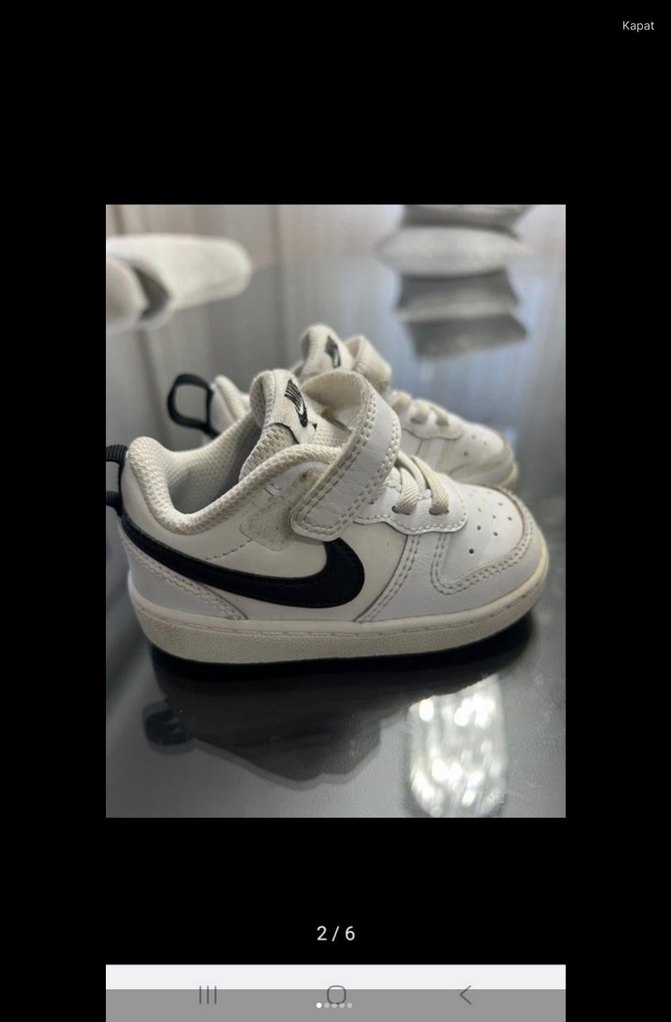 Beyaz erkek çocuk spor ayakkabısı, cırtlı bant ve kauçuk tabanlıdır. Siyah detaylı, rahat ve sokak tarzı için uygundur.