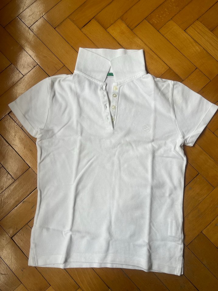 çocuklar için beyaz pamuklu, düğmeli ve yakalı, sade ve şık bir sokak stili tişört.