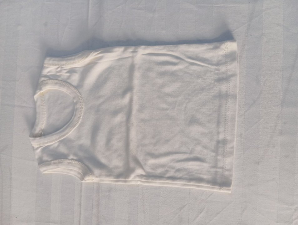 Çocuklar için yumuşak ve düz beyaz atlet, rahat kumaştan üretilmiştir.