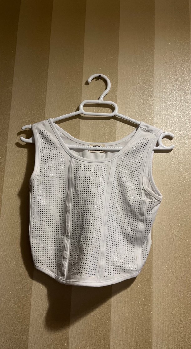 Çocuklar için beyaz, nefes alabilir fileli kumaştan üretilmiş kolsuz atlet. Rahat ve havadar kullanım sağlar.