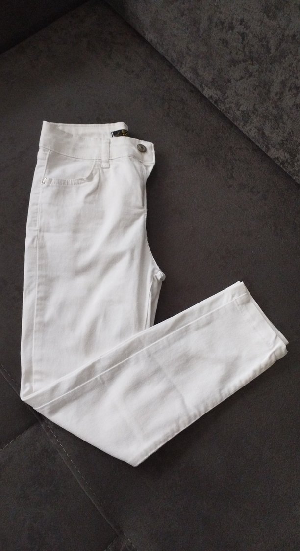 Çocuklar için beyaz skinny pantolon, normal kesim ve uzunlukta, yumuşak pamuk kumaştan üretilmiştir. Günlük kullanım için rahat ve şık bir seçenektir.