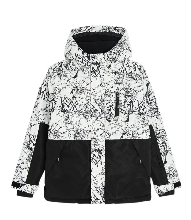 Cocuk Beyaz Siyah Bağlamalı Boya Kayak Ceketi