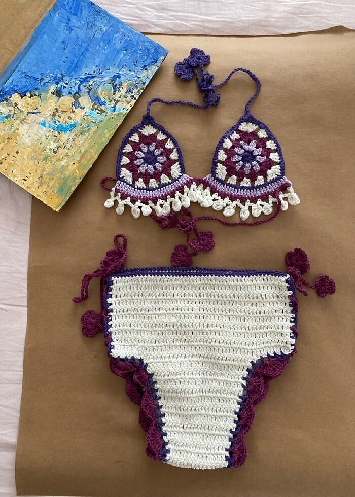 Tığ işi el örgüsü bikini başka renklerde ve modelde istenirse tasarlanıla bilir