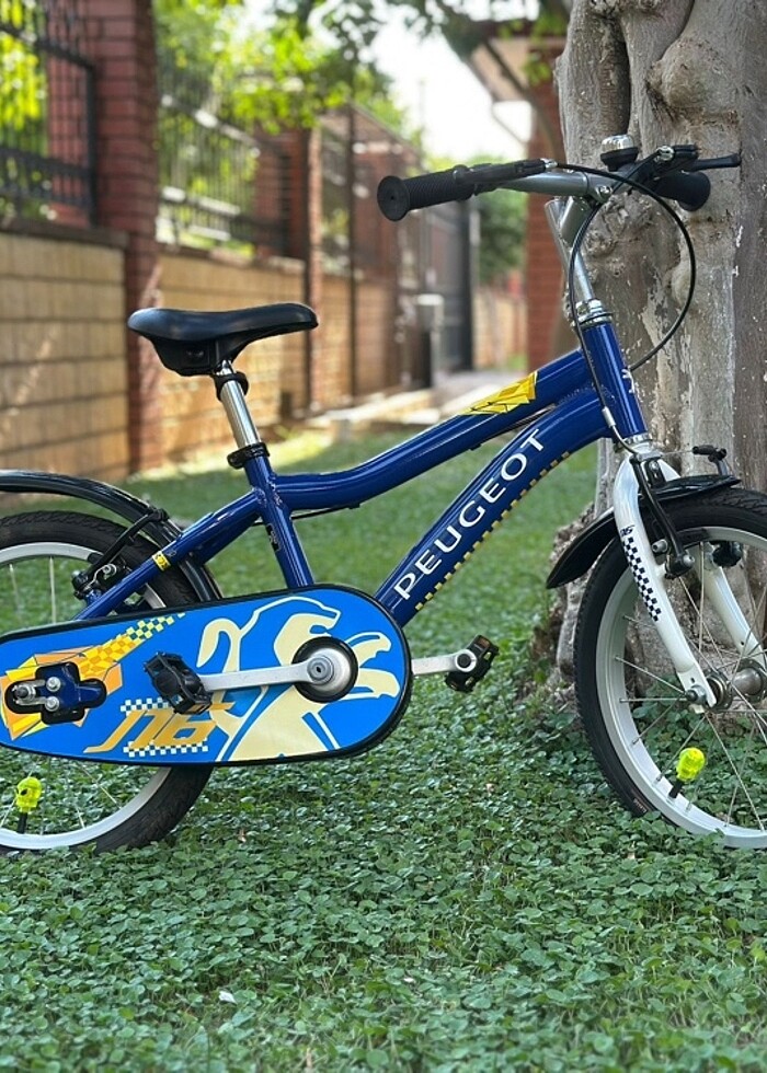 Peugeot çocuk bisikleti. 16 jant çocuk bisikleti. Çok az kullanıldı. Hatası, kusuru ve defosu yok. 140 cm boya kadar rahat kullanılabilir. Bisiklete ek olarak yan denge tekerlekleri, sibop süsü ve zili mevcuttur.