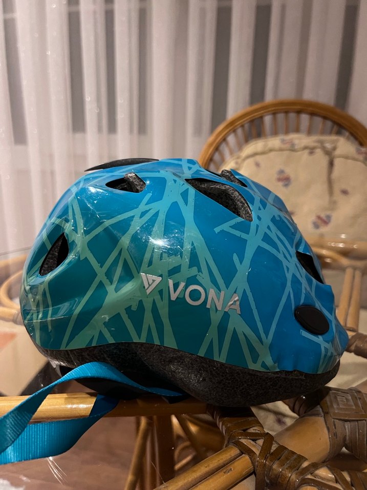 Turkuaz baskılı biker motosiklet kaskı, velcro bantlıdır. Dayanıklı plastikten yapılmış, koyu canlı renkte ve rock punk tarzında. ️