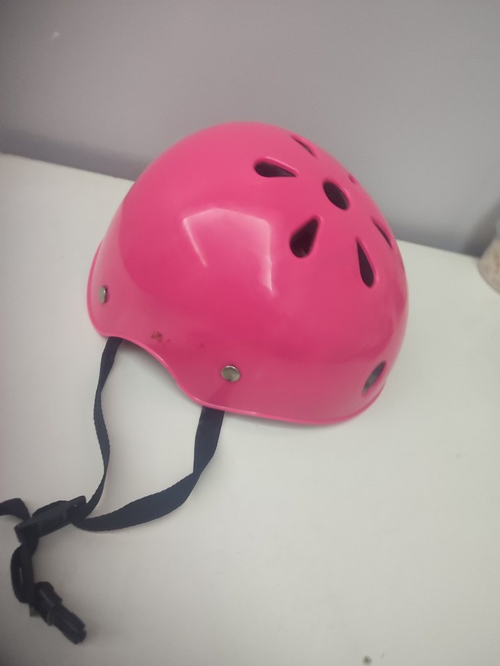 Pembe renkte, dayanıklı plastikten yapılmış, delikli ve kayışlı biker kaskı. Renkli ve sade tasarımıyla punk havası katıyor. ️5 yaş ve üzeri uygun