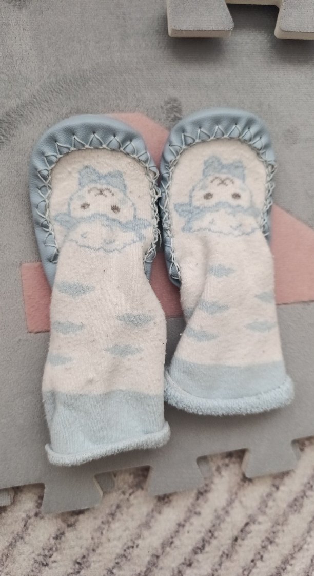 Kız çocukları için bohem tarzda, pastel gri renkte, triko dokulu ve yumuşak kürklü sıcacık ev terliği.
