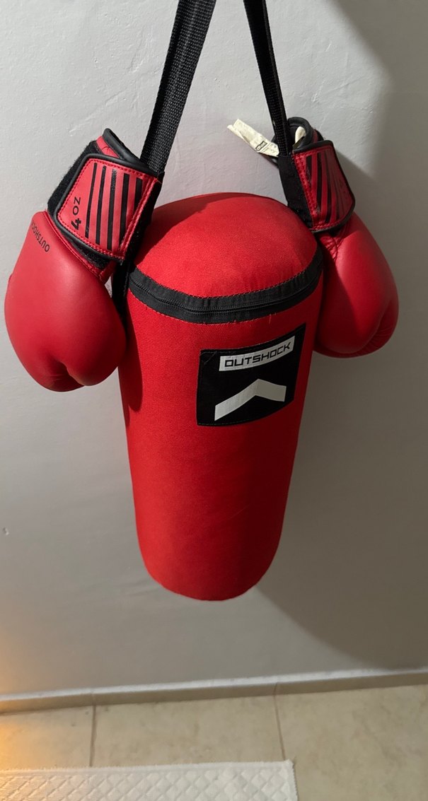 Decathlon outshock bantlı, yumuşak dokulu kırmızı çocuk boks eldiveni ve torbası. Çok az kullanıldı herhangi bir deformesi yoktur.