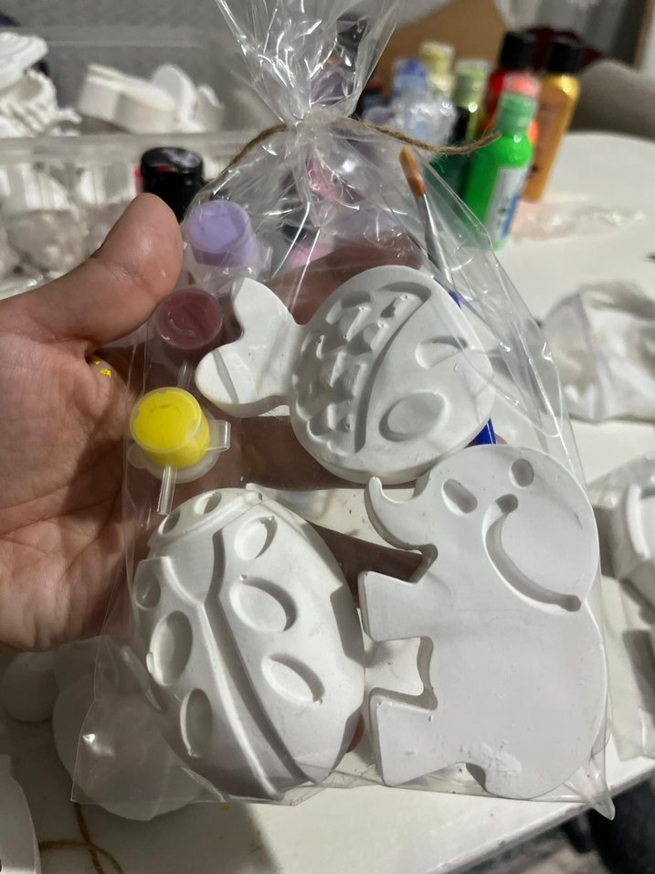 Taş tozu boyama kiti 3 obje 3 renk boya 1 Adt fırça