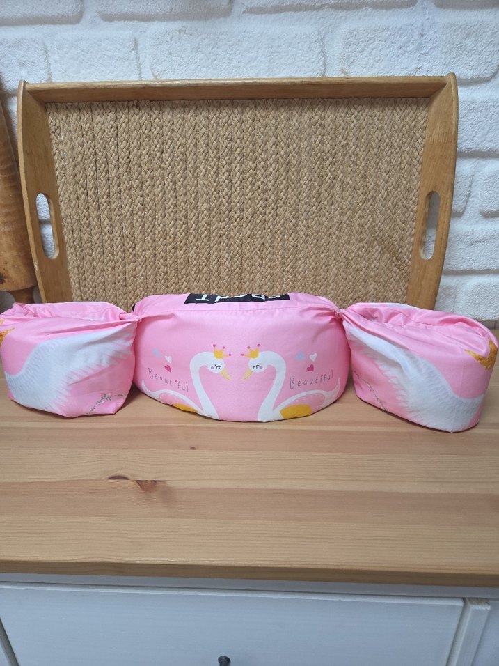 Pastel pembe renkte, üzerinde iki kuğu ve 'Graceful' ile 'Beautiful' yazıları bulunan desenli hamile ve emzirme yastığıdır. Rahat destek sağlar.