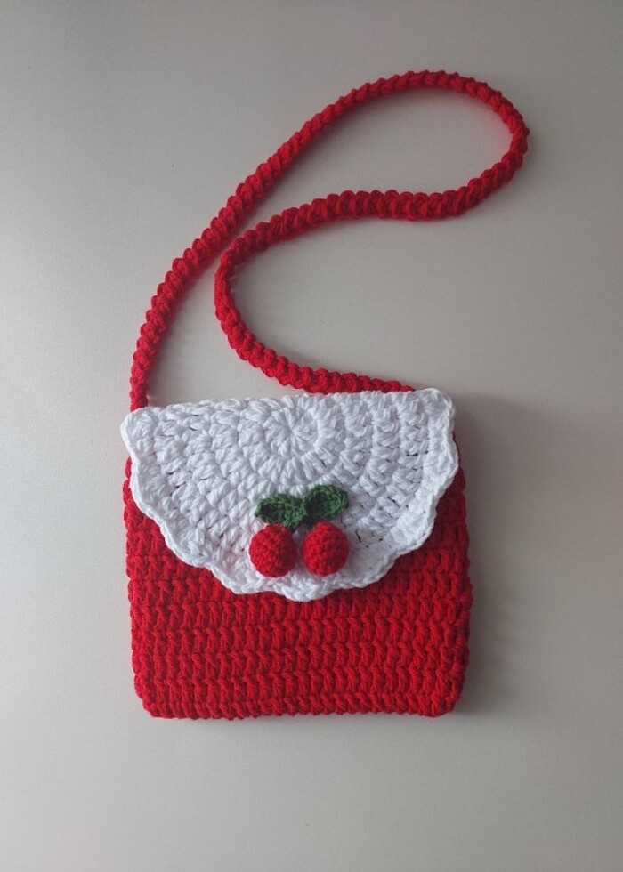 Meyve objeli çocuk çantası Coton iple örülmüştür