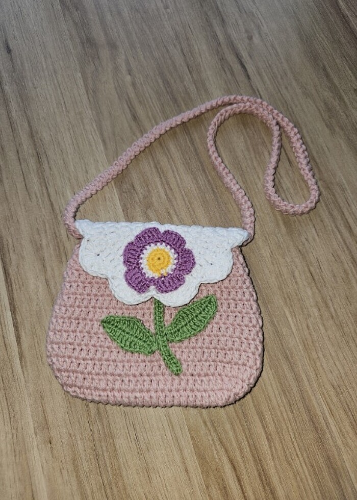 El örgüsü, tamamen pamuk ipten.Kız çocuklar için bayram çantası.