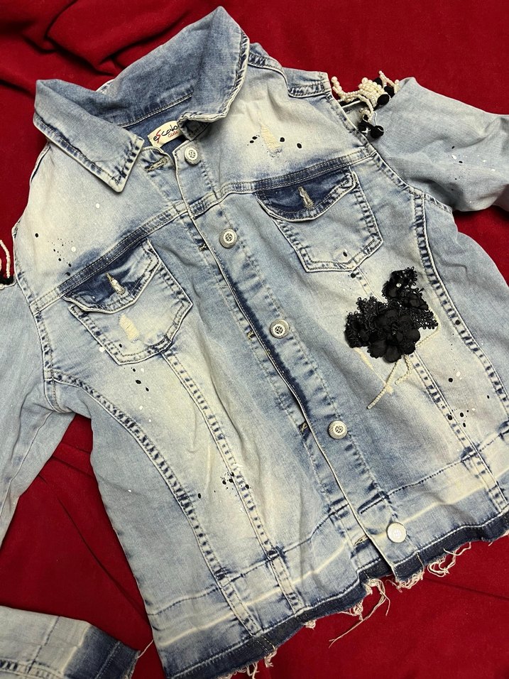 Çocuk ceketi Nakışlı Düğmeli Koyu Mavi Denim