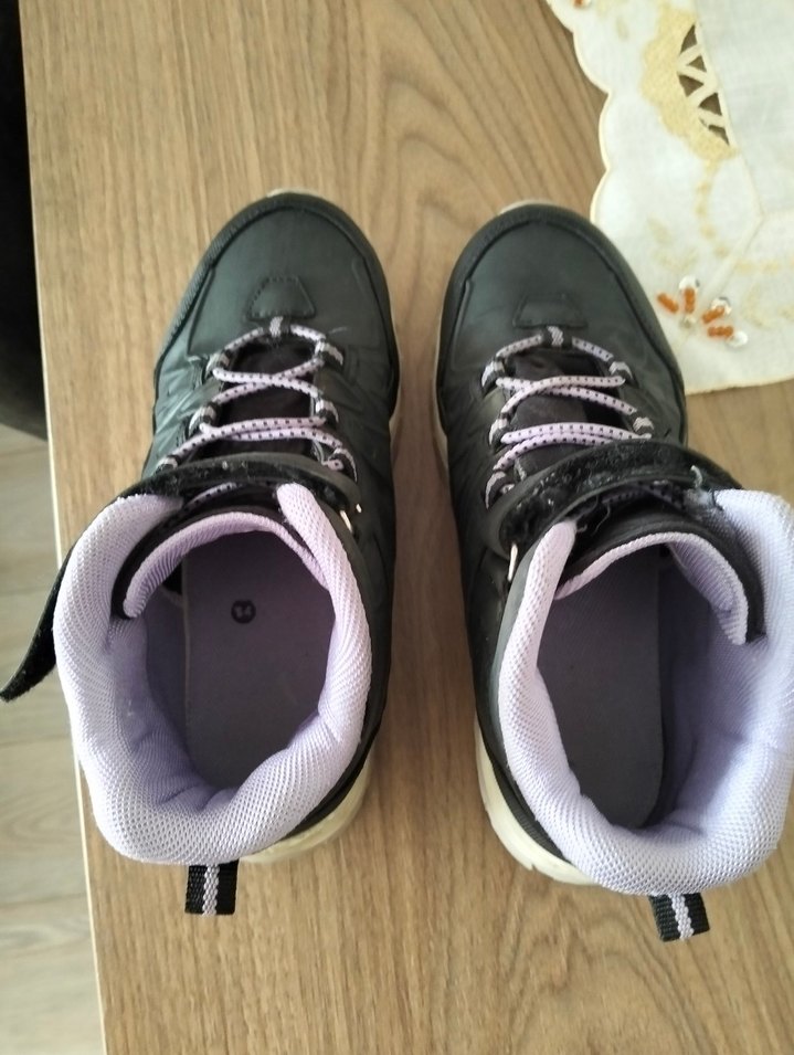 Lila ve gri renklerde, cırtcırtlı kar botu kız çocuk , dış mekan kullanımı için uygun.