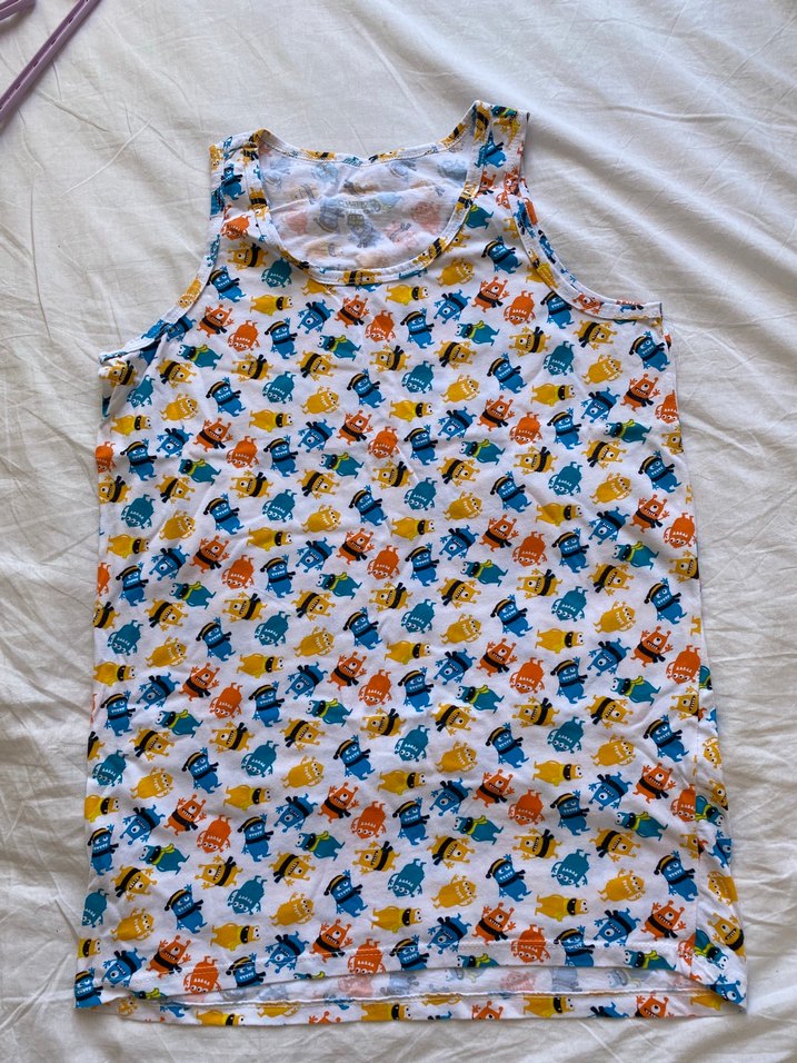 Çok renkli, yumuşak kumaştan çocuk atlet, kolsuz ve rahat kullanım için uygundur.