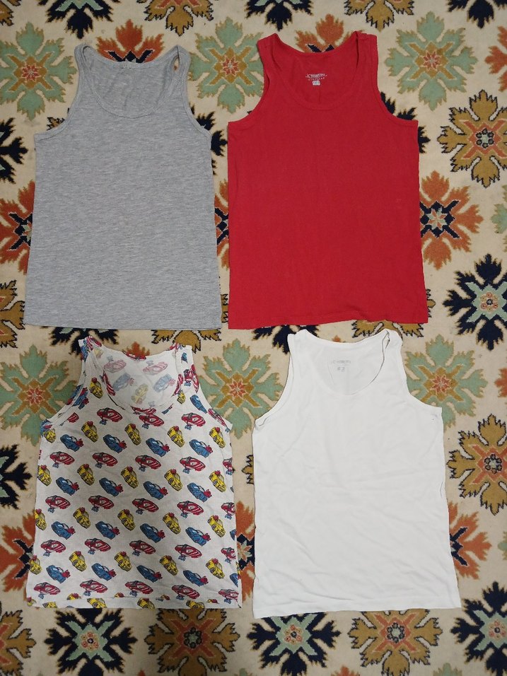Gri, kırmızı, beyaz ve çok renkli araba desenli dört adet çocuk atlet seti. Yumuşak ve rahat kumaştan üretilmiştir. Çok güzel, tertemiz yeni gibi. 2-5 yaş arası için uygundur. Gönül rahatlığıyla kullanabilirsiniz.