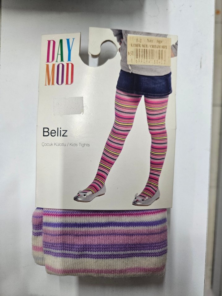Beliz markalı, yumuşak ve sıcak dokulu çok renkli bağlama desenli çocuk külotlu çorap. 1-2 yaş için uygundur