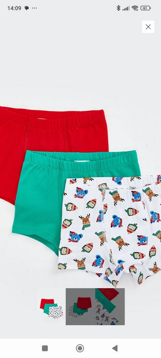 Bu paket, kırmızı, yeşil düz renk ve hayvan desenli beyaz olmak üzere üç renkli çocuk boxer içerir. Rahat elastik bel bantlıdır.