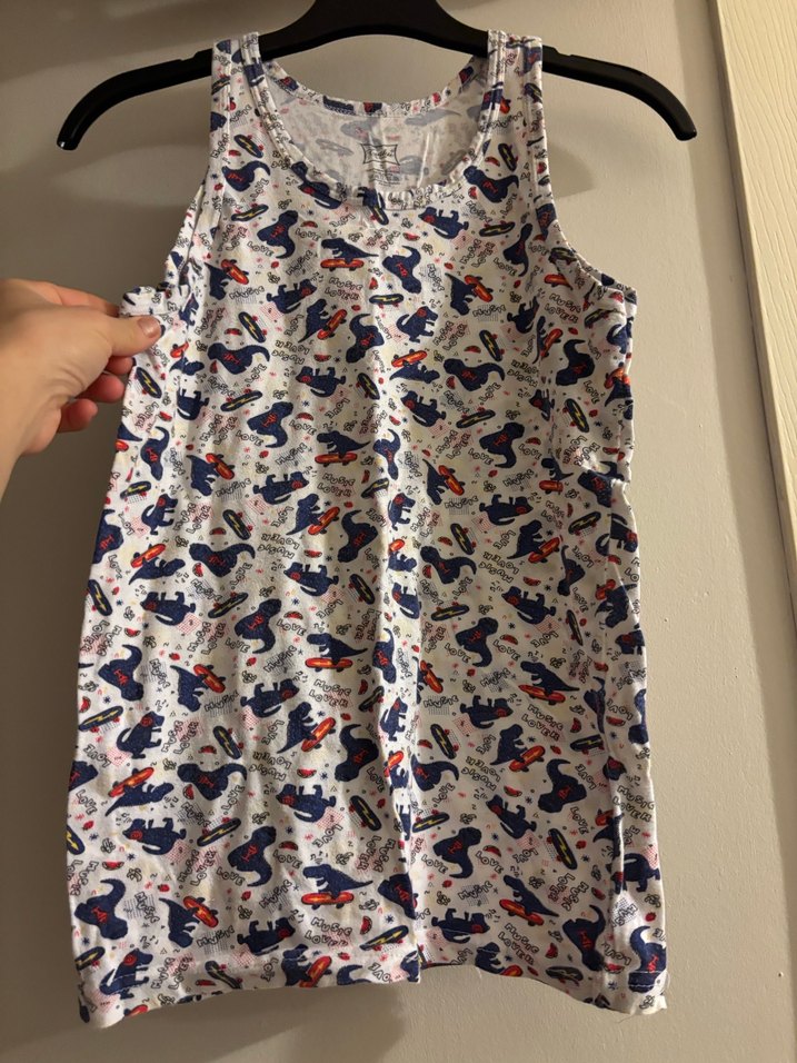 Çocuklar için çok renkli soyut desenlerle süslenmiş, hafif bağlama desenli yumuşak kumaştan yapılmış atlet.