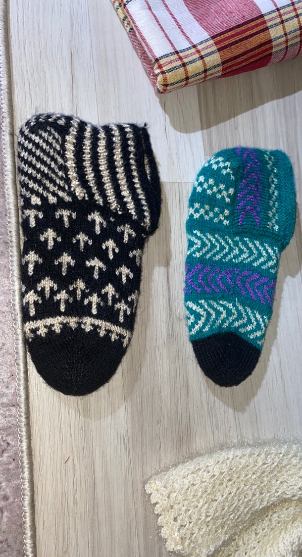 Çocuklar için çok renkli ve desenli örme çoraplar, sıcak ve rahat kullanım sağlar.