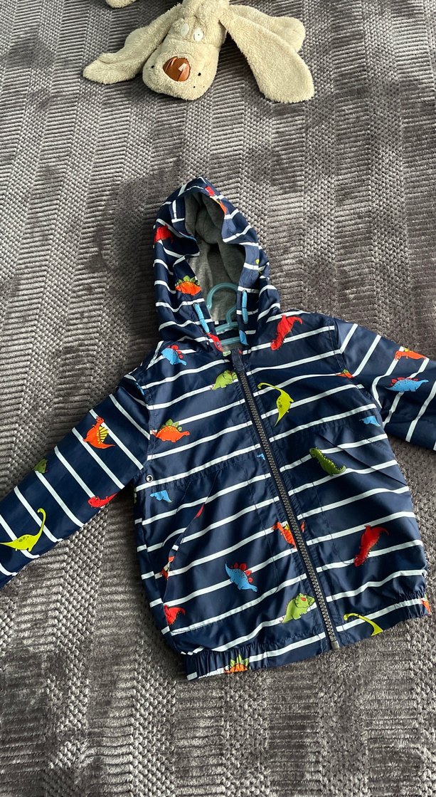 Çocuklar için çok renkli dinozor desenli kapüşonlu ve fermuarlı yağmurluk. Yumuşak ve sıcak kumaştan, fitted kesimle tasarlanmıştır. ️
