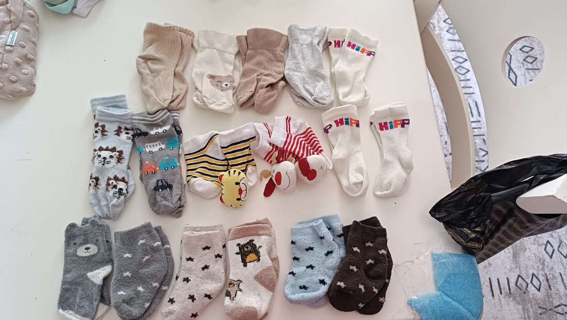 Renkli, yumuşak kumaşlardan yapılmış desensiz ve karakterli çocuk çorapları, 'HiP' markalı. bebek