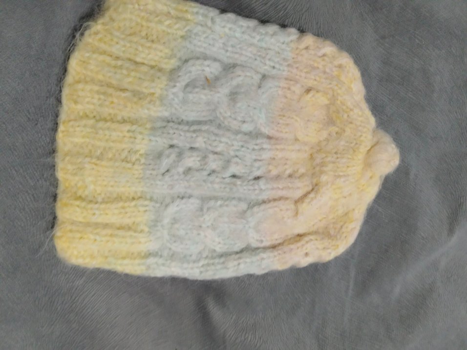 çocuk için çok renkli, gri ve krem tonlarında örgü bohem tarzda, rahat bir bere. Retro ve hippie havası verir. iki adet birlikte sıfır bere yün karışımı el örgüsü 4 5 6 yaş gibi