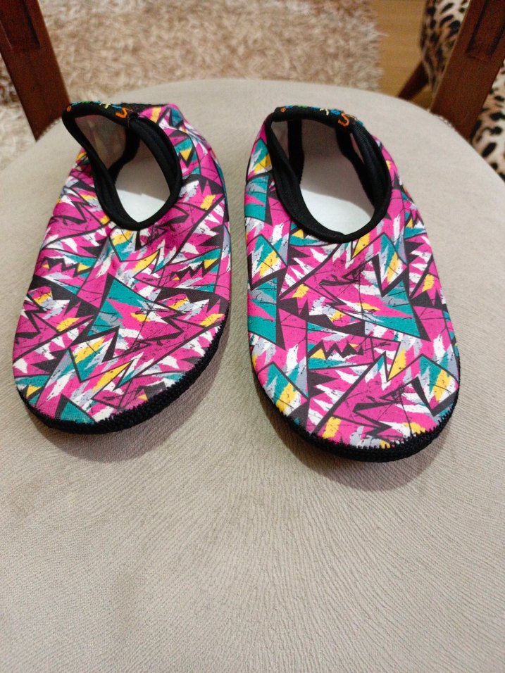 Çok renkli bağcıksız, velcro kapamalı çocuk deniz ve havuz ayakkabısıve retro bohem tarzda üretilmiştir.
