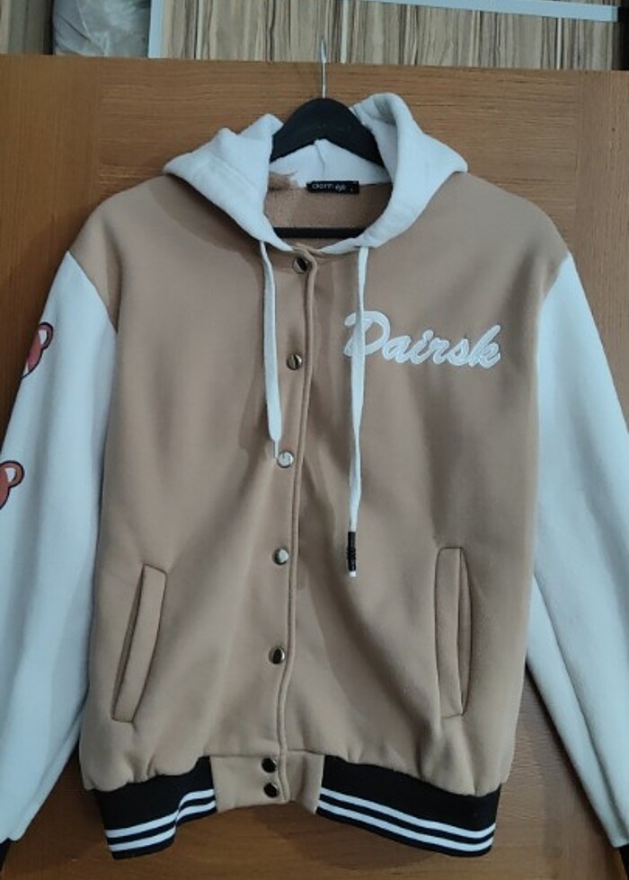Çocuk college mont kolları desenli kız erkek farketmez unixes L beden yazıyor ama ben 10 yaşında ki oğluma giydirdim