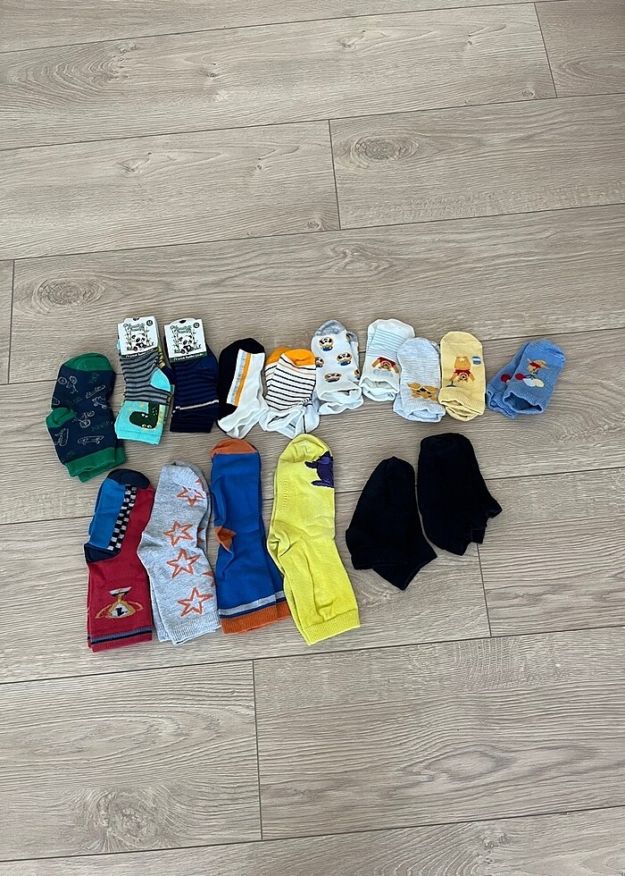 Ürünlerden bazıları soket çorap bazıları patik çoraptır hiç kullanılmamış olanlar da vardır Numaralar değişiklik göstermektedir Numaralarını görsele ekledim Toplu olarak satılmaktadır