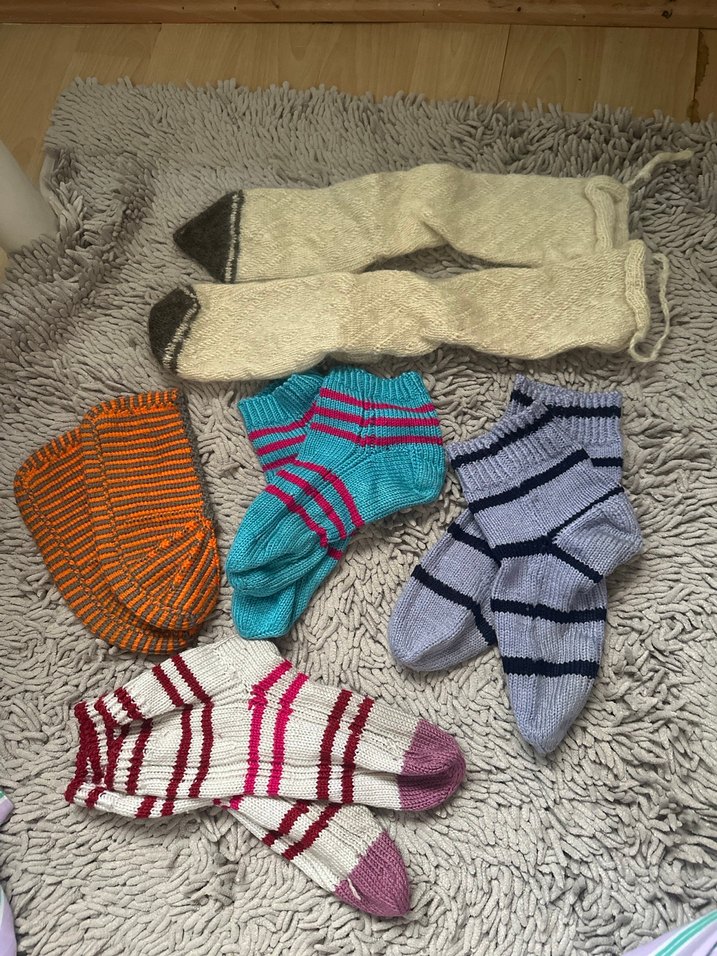 Çizgili ve düz desenlerde, gri, mavi, turuncu ve krem renklerde çocuk çorapları seti. Rahat ve kullanışlıdır.