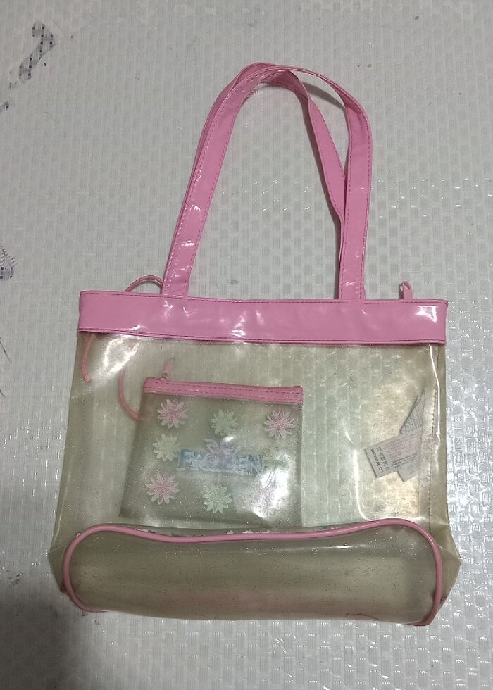 Çocuk deniz çantası. Az kullanılmış ıyi durumda deformesi yok. 50. Tl. Frozen. Marka. Seffaf. Renk.
