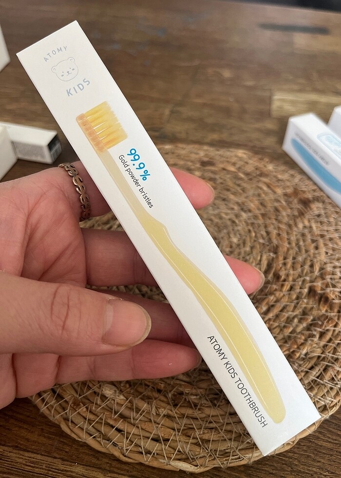 Korenin en prestijli markasından altın tozu içerikli, plastik içermeyen çocuk diş fırçası.