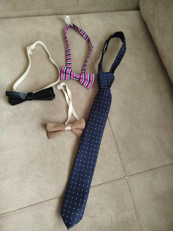 Renkli, elastik çocuk papyonları ve kravat, yumuşak sentetik kumaştan, trend sokak giyimine uygun.